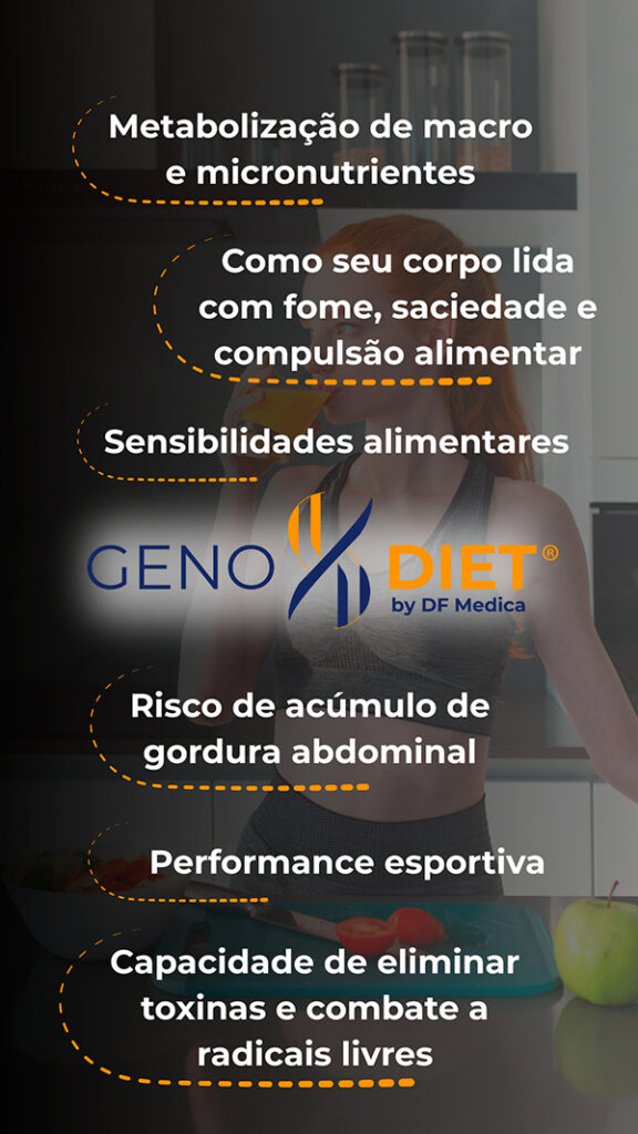 O GenoDiet é um exame genético que analisa como os genes influenciam a alimentação e o desempenho físico, oferecendo informações para estratégias personalizadas de saúde e performance.